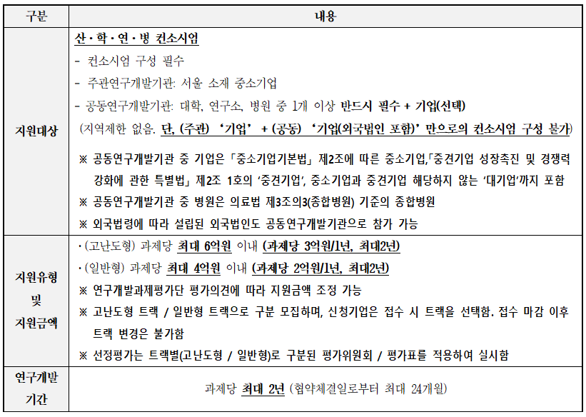 2026년 바이오·의료 기술사업화 지원사업을 다음과 같이 공고하오니 참여를 희망하는 서울 소재 중소기업 및 컨소시엄은 관련 규정과 절차에 따라 신청하여 주시기 바랍니다.